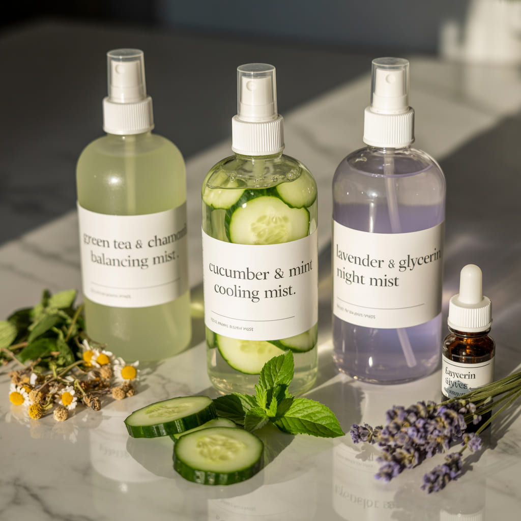 I like to use distilled water or rose water as my base, since they’re gentle and refreshing. For a boost, I’ll add ingredients like aloe vera, green tea, or witch hazel (always alcohol-free).